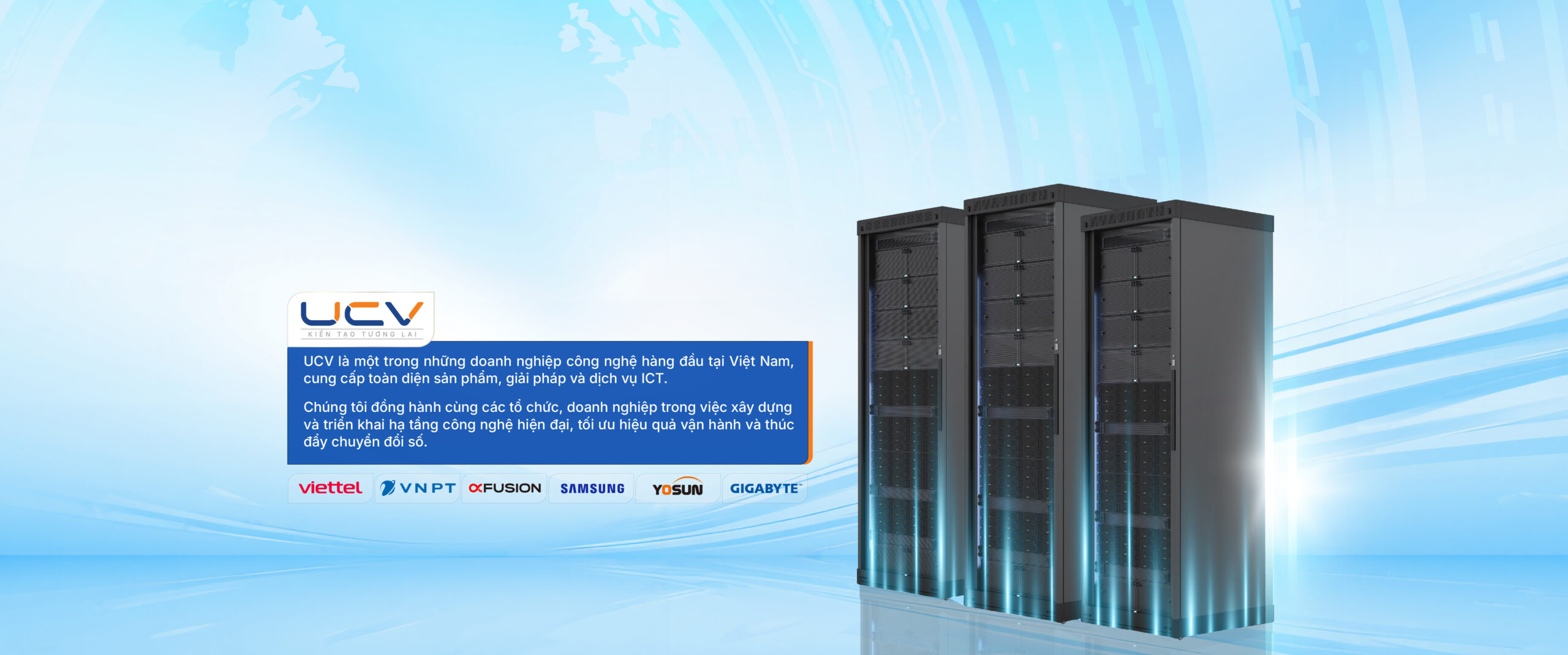UCV là một trong những doanh nghiệp công nghệ hàng đầu tại Việt Nam, cung cấp toàn diện sản phẩm, giải pháp và dịch vụ ICT. Chúng tôi đồng hành cùng các tổ chức, doanh nghiệp trong việc tư vấn, xây dựng và triển khai hạ tầng công nghệ hiện đại, đảm bảo tính ổn định, an toàn và khả năng mở rộng, góp phần tối ưu hiệu quả vận hành và thúc đẩy chuyển đổi số bền vững.