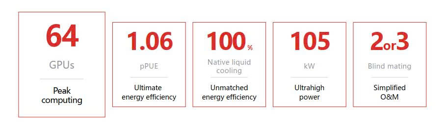 Giải pháp xanh và ít phát thải carbon, làm mát bằng chất lỏng 100%, pPUE mỗi tủ thấp tới 1,06; triển khai tủ tích hợp giúp nâng hiệu suất triển khai lên gấp 10 lần